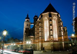 1603 schlägt eine große Stunde für Bayreuth, als es nach dem Aussterben der älteren Linie der fränkischen Hohenzollern zur Residenzstadt geadelt wird und Markgraf Christian die Hofhaltung von der Kulmbacher Plassenburg nach Bayreuth verlegt.