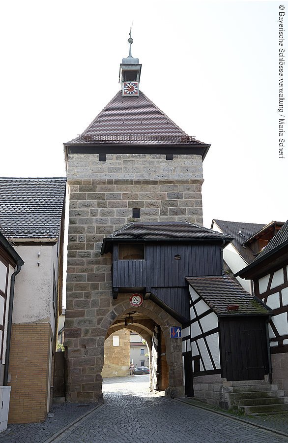 Das mächtige Stadttor aus dem 15. Jahrhundert weist den Besuchern den Weg zum Cadolzburger Marktplatz. Der Straßenzug mit seinen Fachwerkhäusern entstand in enger Abhängigkeit zu den hohenzollerischen Landesherren und führt direkt auf die mächtige Hohenzollernburg über dem Ort zu.