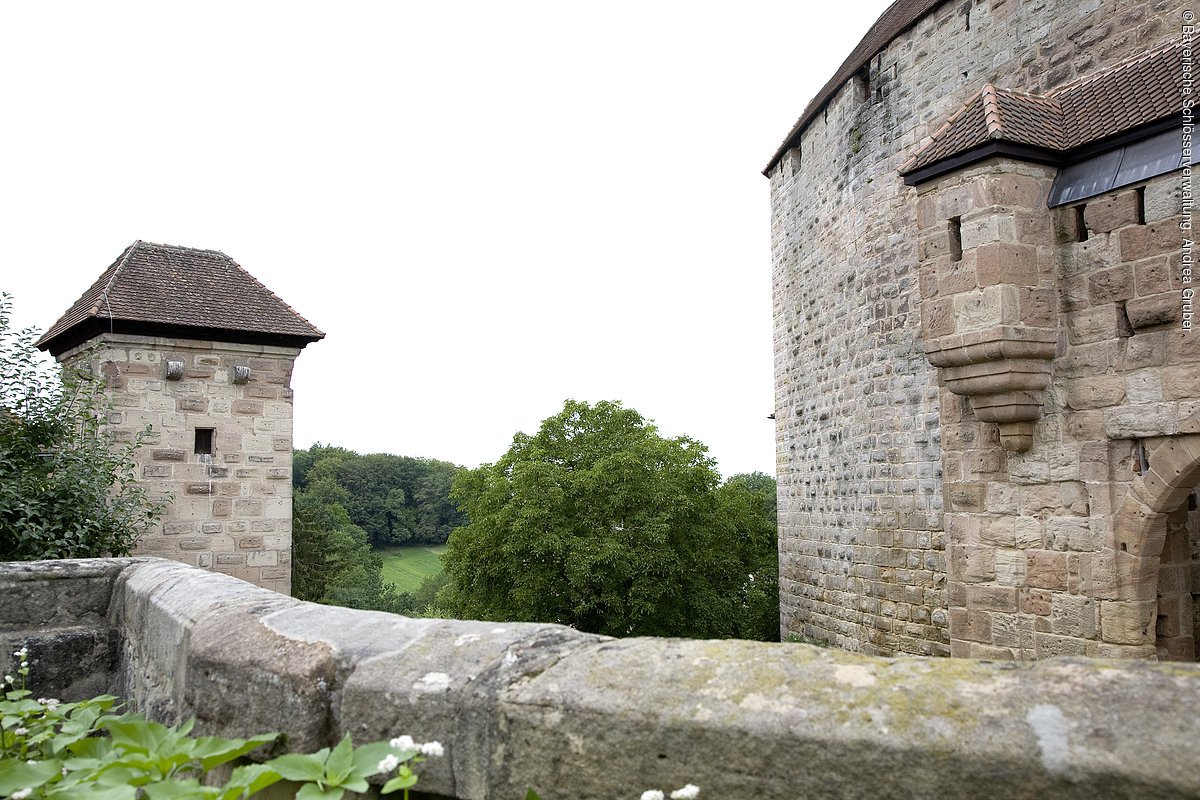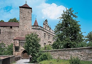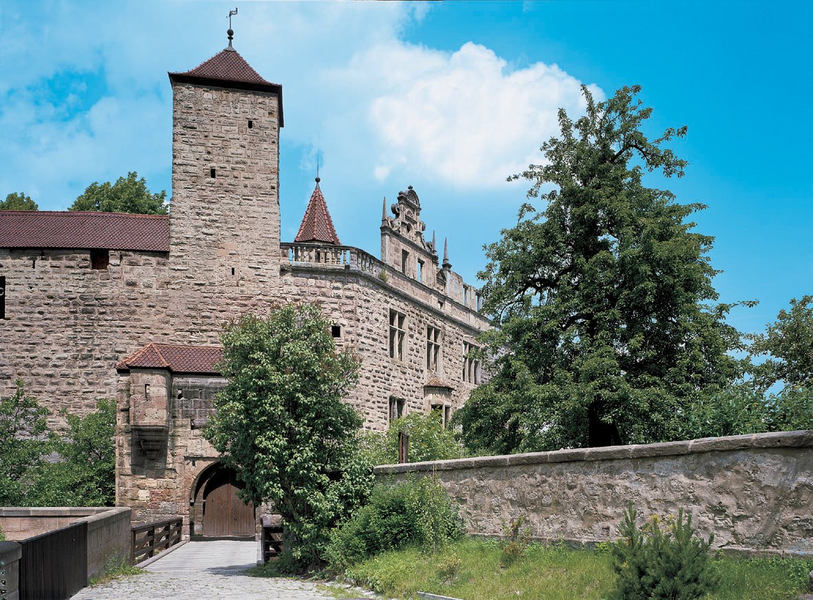 Schon von Weitem sichtbar thront die Hauptburg der Cadolzburg auf einer steilen Felsnase über dem gleichnamigen Ort. Sie besitzt eine imposante Ringmauer, die wie das Haupttor und ein Teil des Neuen Schlosses aus dem 13. Jahrhundert stammt. Im Laufe der folgenden Jahrhunderte bauen die Hohenzollern die Burg in repräsentativer Weise aus.