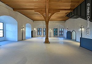 Dr. Ingrid Moor nimmt uns mit vom Burggarten über den Innenhof bis ins Erlebnismuseum.