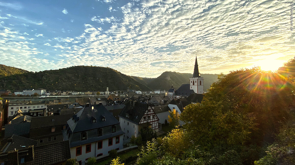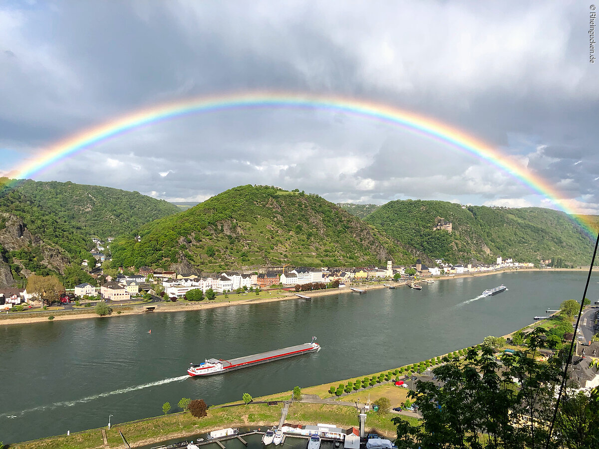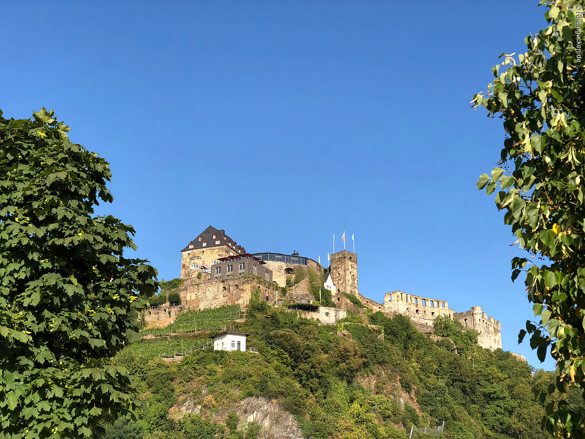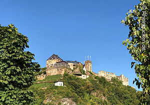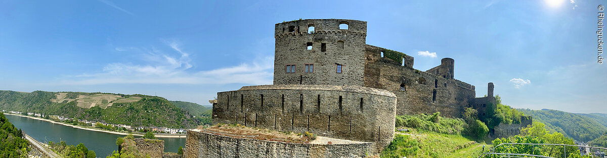 Burg Rheinfels – Teil einer der größten Festungsanlagen Europas – liegt auf dem Schlossberg in St. Goar. Sie erhebt sich über dem Rhein- und dem Gründelbachtal, im Süden schließen sich die Höhen des Hunsrück an. Erbaut wurde die Burg 1245 unter der Herrschaft von Diether dem V. von Katzenelnbogen. Sie diente als Zollburg für Schiffe, die auf dem Rhein verkehrten. Ab dem Jahr 1370 wurde diese Position durch den Bau der gegenüberliegenden Burg Neukatzenelnbogen noch verstärkt.