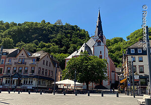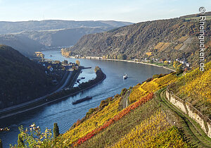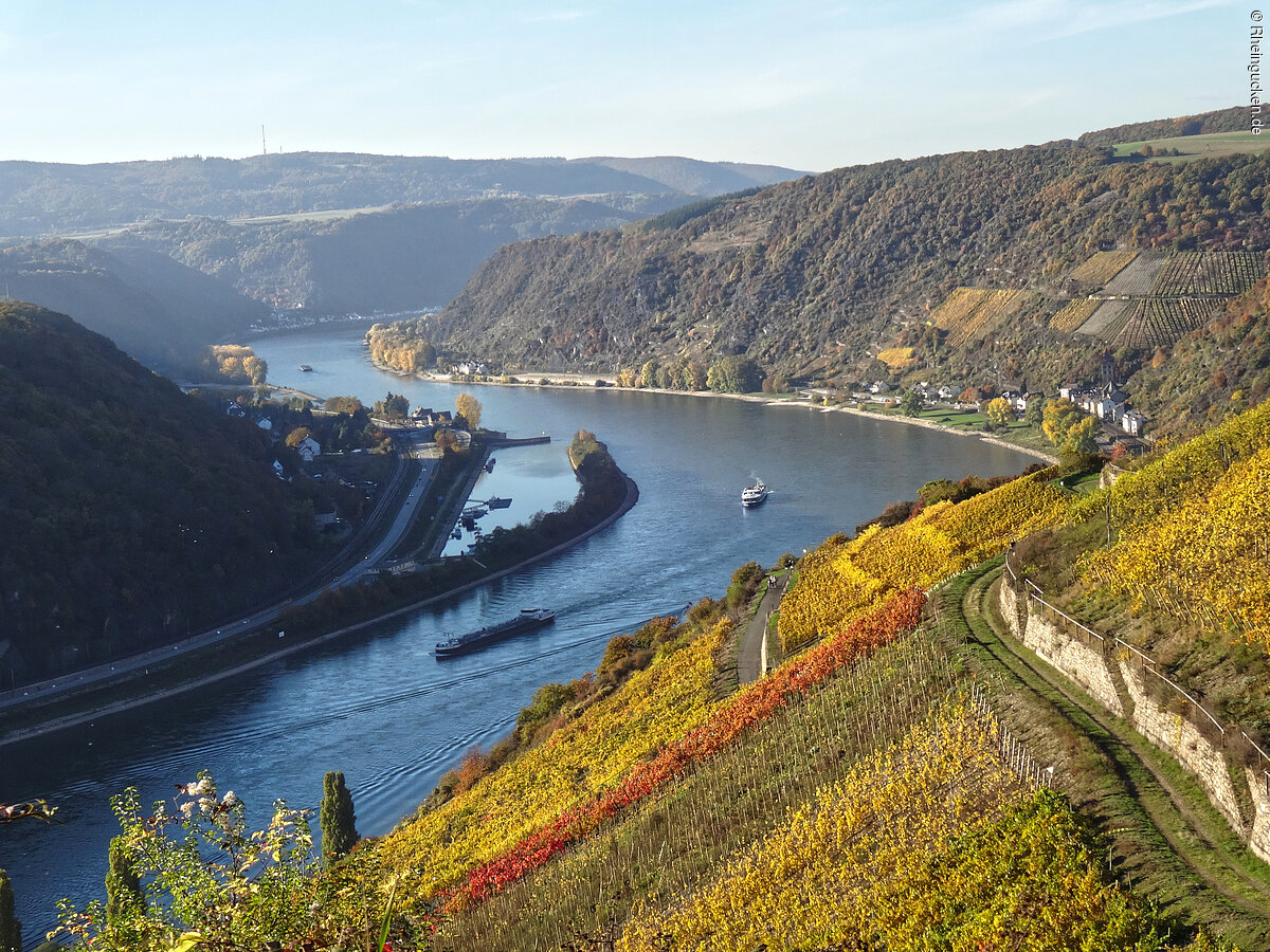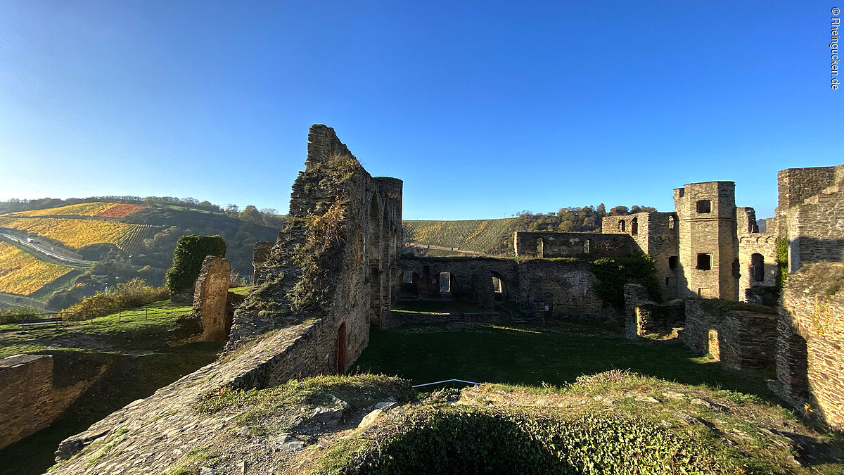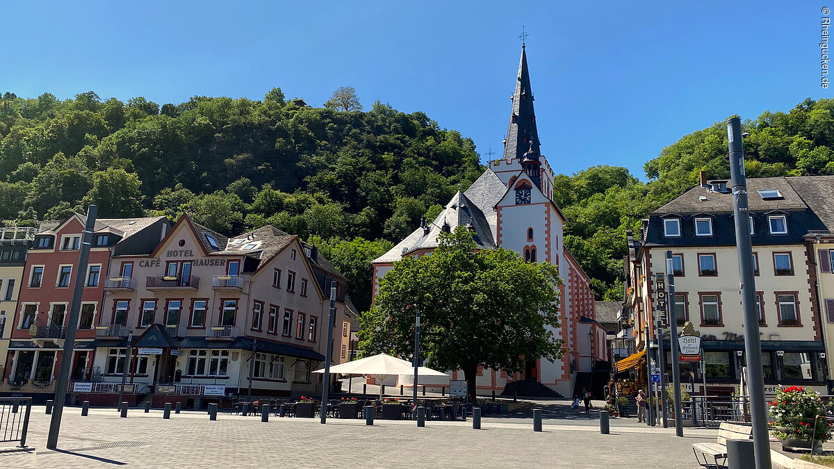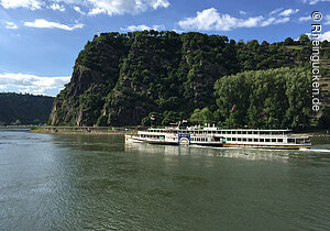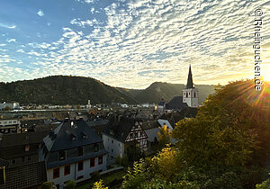 Burg Rheinfels – Teil einer der größten Festungsanlagen Europas – liegt auf dem Schlossberg in St. Goar. Sie erhebt sich über dem Rhein- und dem Gründelbachtal, im Süden schließen sich die Höhen des Hunsrück an. Erbaut wurde die Burg 1245 unter der Herrschaft von Diether dem V. von Katzenelnbogen. Sie diente als Zollburg für Schiffe, die auf dem Rhein verkehrten. Ab dem Jahr 1370 wurde diese Position durch den Bau der gegenüberliegenden Burg Neukatzenelnbogen noch verstärkt.