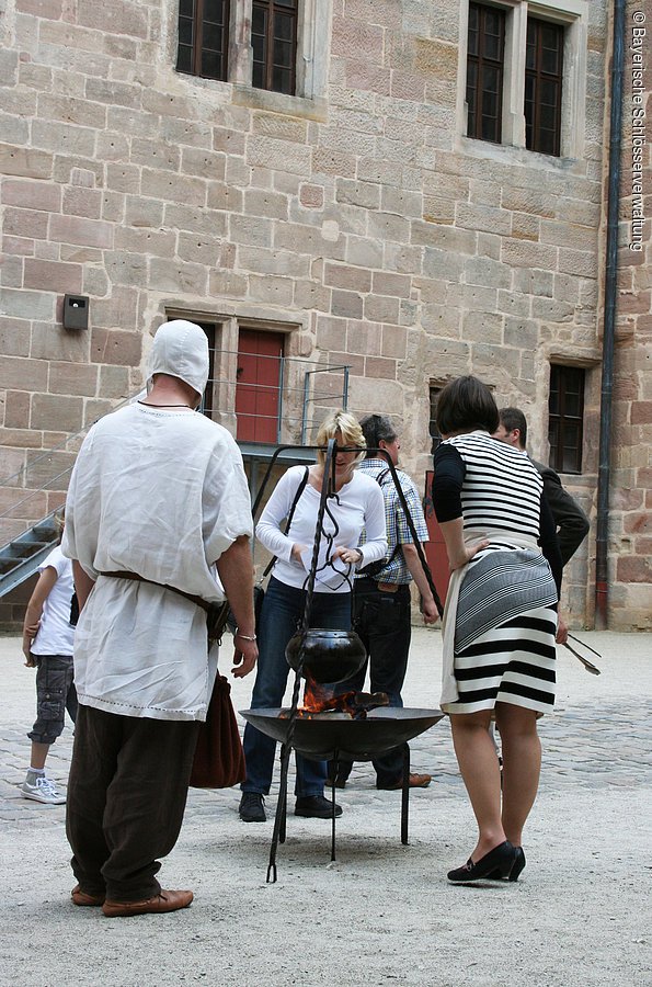 In der Ausstellung staunt man über prachtvolle „Outfits” und über fürstliche O-Töne sowie über zahlreiche Originalobjekte und aufwändige Reproduktionen, hat Spaß an einmaligen Geschichtsspielen und eindrucksvollen Medieninszenierungen und verfolgt den Karriereweg der Hohenzollern. Alltagsthemen wie Kochen, Schlafen, Rechtsverhältnisse, Kommunikation und Repräsentation werden ebenso vermittelt wie die Themen Feuerwaffen, Jagd, Tanz oder Turnier. Zudem erzählt die Burg selbst ganz eigene Geschichten über ihre verschiedenen Nutzungen im Lauf der Jahrhunderte.