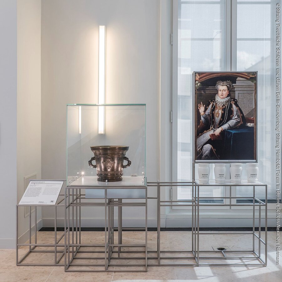 Ganz besonders geprägt hat den Ort ohne Zweifel die Familie der Hohenzollern. Sie residierten hier für 475 Jahre (1443-1918) als Kurfürsten von Brandenburg, Könige von Preußen und deutsche Kaiser. In den Dauerausstellungen kommt daher der Selbstdarstellung der Hohenzollern an diesem Ort eine wichtige Rolle zu. Bewusst werden dabei auch die Frauen der Dynastie wie Kurfürstin Katharina, die Gründerin der Hofapotheke, oder Königin Elisabeth Christine, die im Schloss das Königreich repräsentierte, ins Bewusstsein gerückt.