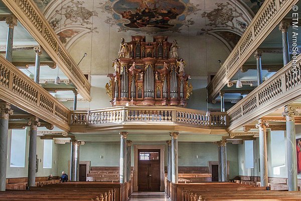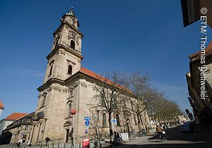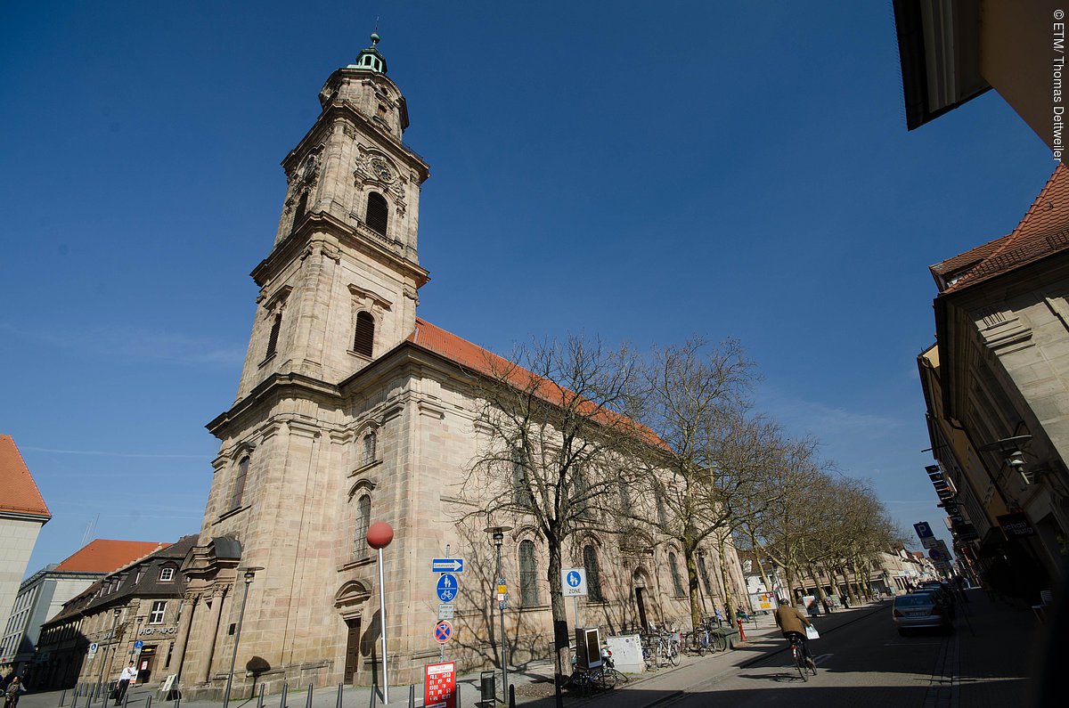 Von Wenzel Perner geplant, wird die Neustädter Kirche in der Hugenottenstadt Erlangen 1725 bis 1737 für die wachsende Zahl der evangelisch-lutherischen Zuwanderer errichtet. Mit 60 Metern ist der Kirchturm der höchste in Erlangen. Sehenswert sind die Deckenfresken von Christian und Karl Georg Leinberger (1734 bis 1735), der prächtige Kanzelaltar und das Altargemälde.
