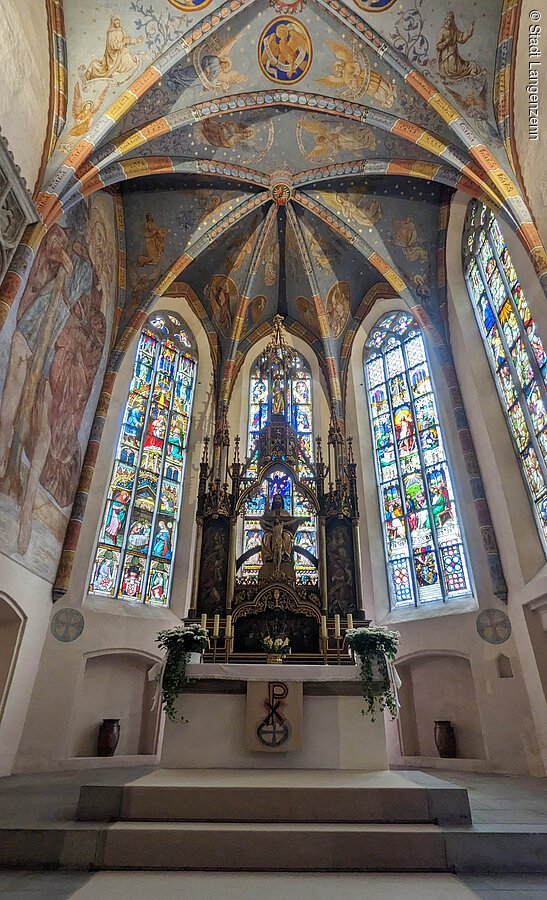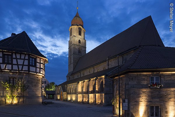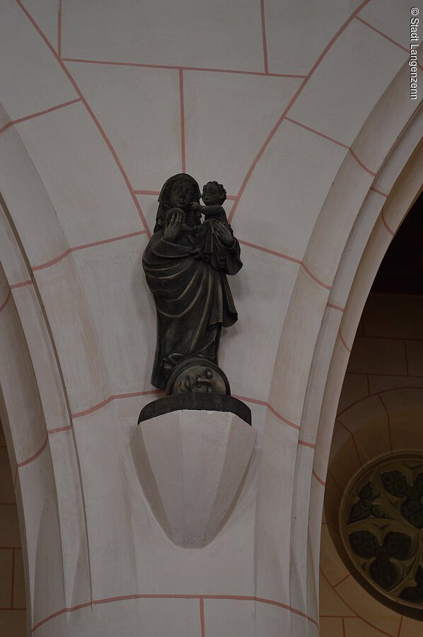 Im Jahr 954 wird Langenzenn als Königshof „cinna” zum ersten Mal erwähnt. Anlass ist ein Reichstag mit König Otto I. Schon damals existiert höchstwahrscheinlich – wie an Königshöfen üblich – eine Holzkirche. Um 1100 bildet Langenzenn bereits ein geistiges Zentrum für die umliegenden Gemeinden. Als 1388 im Städtekrieg die Nürnberger Langenzenn verwüsten und die Kirche in Flammen aufgeht, übersteht eine Marienplastik, durch den Brandruß geschwärzt, das Inferno. In der Folge setzt eine große Wallfahrt zur „schwarzen Maria von Langenzenn” ein, die über Jahrhunderte Bestand hat. Um der Bedeutung des neuen Wallfahrtsorts gerecht zu werden, stiften die Hohenzollerischen Burggrafen Johann III. und Friedrich VI. von Nürnberg das Augustiner-Chorherrenstift und lassen eine neue Kirche erbauen.