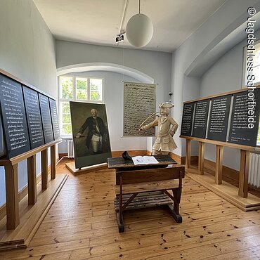 In seinem Schreibzimmer im Jagdschloss Schorfheide schreibt König Friedrich Wilhelm I. die Grundlagen für die Reform des Preußischen Beamtentums nieder.