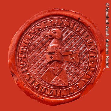 Ab 1320 wird das Hohenzollernschild mit Helm und Brackenkopf als Stadtsiegel von Neustadt a.d.Aisch verwendet.