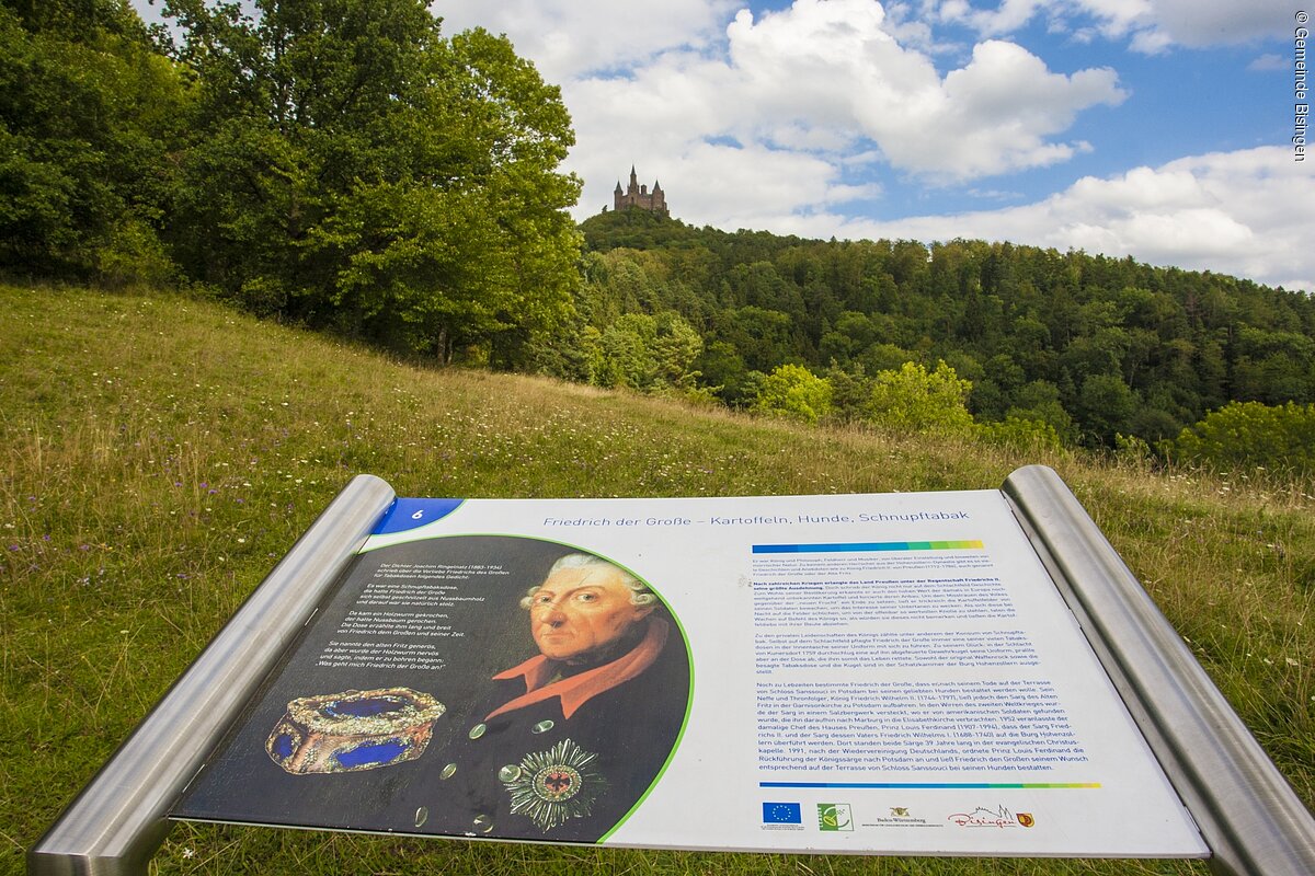 Der Kaiserweg führt Sie durch die Geschichte der zum 3. Mal erbauten Burg Hohenzollern und der am Fuß der Burg liegen den Gemeinde Bisingen. Genießen Sie herrliche Ausblicke auf die Burg und die Hohenzollerschen Lande! Freuen Sie sich auf unglaubliche Geschichten, die Groß und Klein gleichermaßen begeistern!