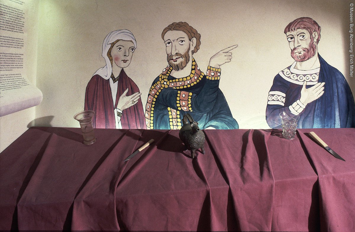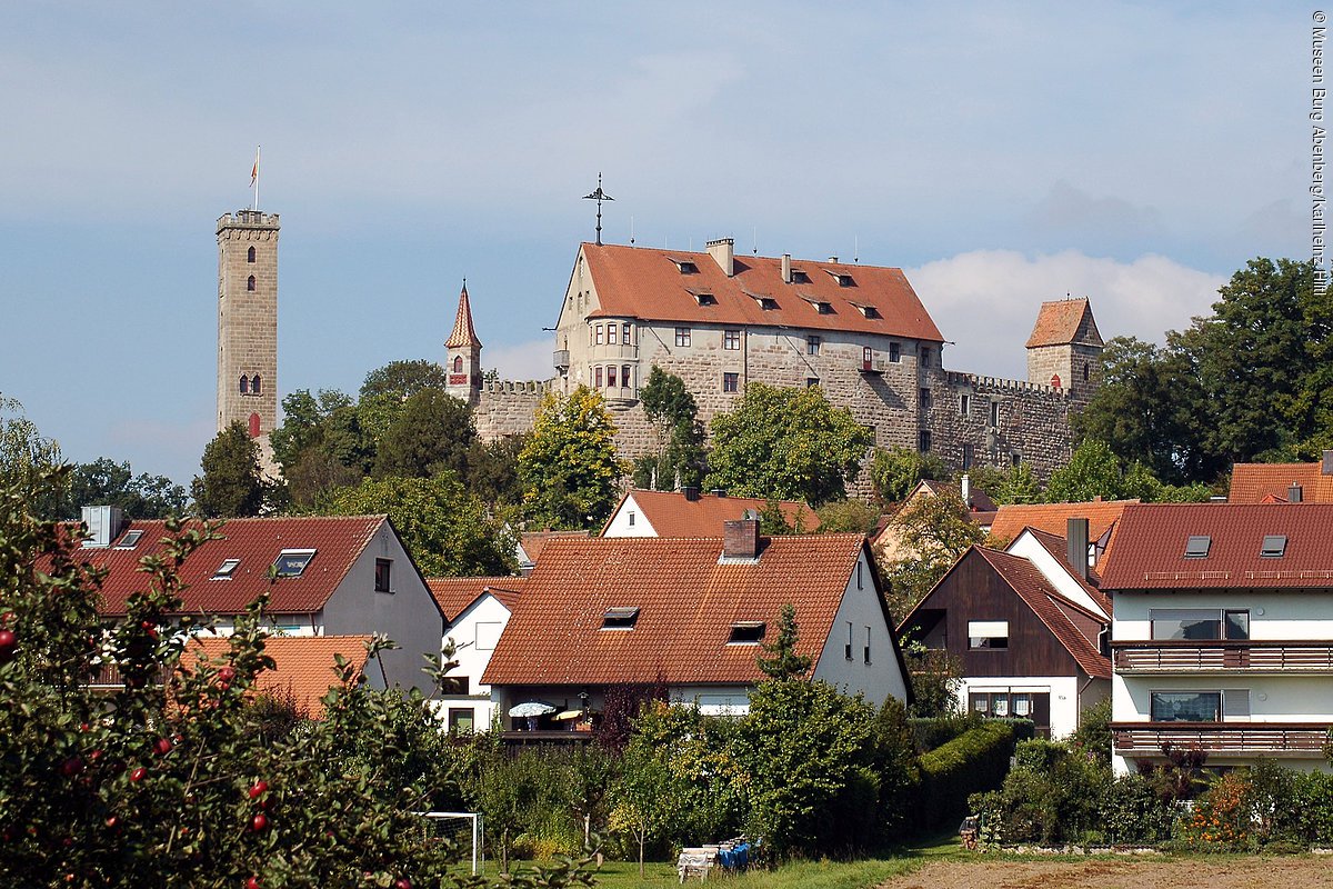 Um das Jahr 1200 kommt Burg Abenberg in den Besitz der Hohenzollern. Unter den Vorbesitzern war die Burg Schauplatz vieler Turniere. Einen guten Blick auf das temporeiche Lanzenstechen der Adligen ermöglichten die Sitzfenster im Palas der Burg, der damals einen direkten Blick auf die Turnierwiese bot.