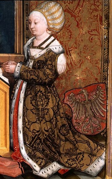 Am 14. Februar heiratet Friedrich V. die polnische Königstochter Sophie von Polen – die prestigeträchtige Ehe sichert auch den Frieden zwischen den Zollern und den Jagiellonen. Aus der Ehe gehen 18 Kinder hervor, von denen 13 das Erwachsenenalter erreichen. Das ist nicht nur teuer, sondern es wird auch eng im Schloss! Deshalb werden einige Kinder an Verwandte wie Elisabeth zur Erziehung abgegeben. Als Sophie 1512 – im selben Jahr wie ihre Schwiegermutter Anna von Sachsen – stirbt, findet sie ihre letzte Ruhestätte in der Zollerngrablege im Zisterzienserkloster Heilsbronn. Friedrich V. wird 1515 aufgrund seines verschwenderischen Lebensstils und seines zunehmend cholerischen Charakters auf der Plassenburg festgesetzt – Ironie des Schicksals: nun ergeht es ihm wie seiner Schwester Barbara, die er ab 1493 in Absprache mit seinem Bruder ebenfalls auf der Plassenburg einsperrte.