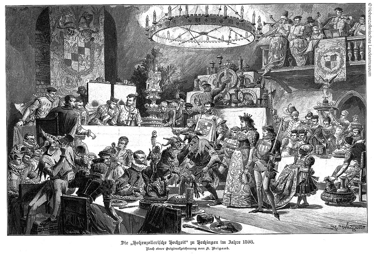 Vom 11. bis zum 18. Oktober 1598 fand in Hechingen die berühmte „Hohenzollerische Hochzeit” statt – eine der größten Hochzeiten, die jemals im südwestdeutschen Raum gefeiert wurde. Bei dieser prunkvollen Vermählung des Erbgrafen Johann Georg von Hohenzollern (ab 1623 erster Fürst von Hohenzollern-Hechingen) mit Franziska Wild- und Rheingräfin von Salm-Neufville kamen rund 1.000 Gäste nach Hechingen. Die Residenzstadt zählte damals so mehr Gäste als Einwohner.